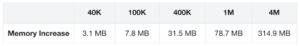 Figure 2. Memory usage of show commands increases linearly with routing table size.