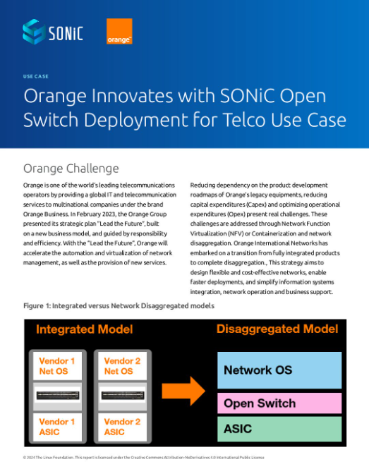 Orange, a global telecommunications leader, documents the first telco use case of disaggregated SONiC switches in production. By using SONiC, Orange harnesses SONiC’s benefits of flexibility, cost efficiency, and open source innovation for future-ready network solutions. This case study exemplifies how Orange is setting new standards in telecommunications, showcasing the tangible benefits of open, software-driven networking solutions.
